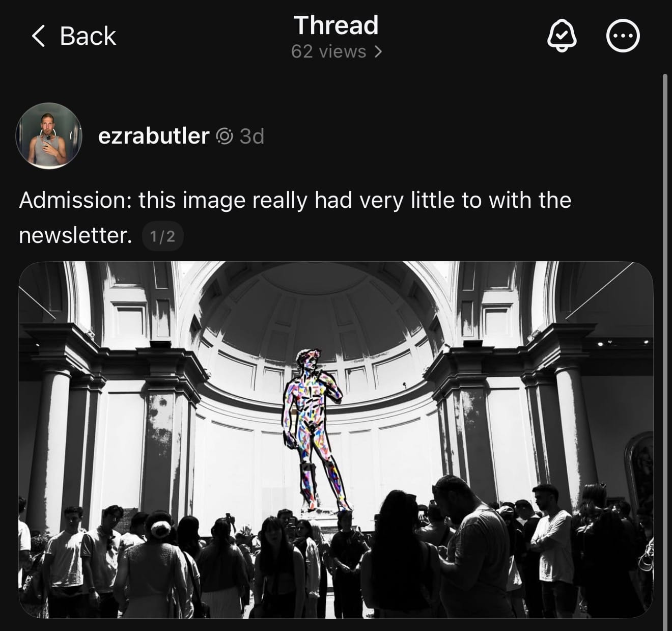 The second is that it shows how much Threads completely controls the potential success of any single post. Simply put: If no one is shown a post, there is very little probability of anyone seeing the post.