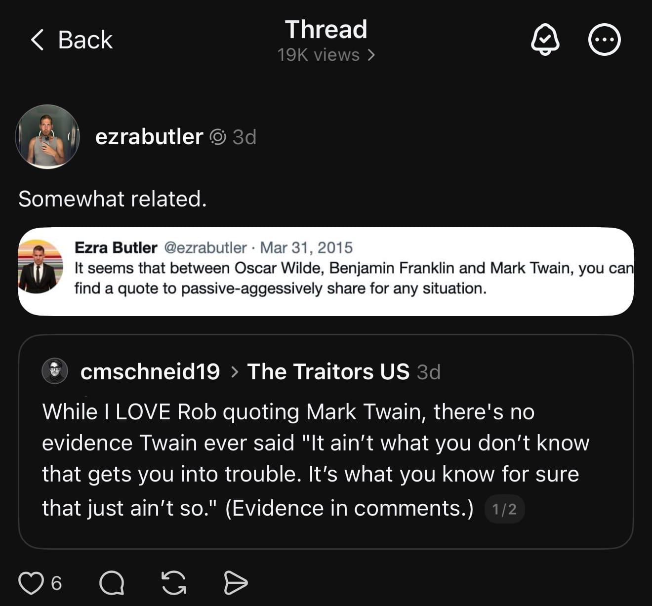 2. I understand how the algorithm is broken, and therefore I understand how I am able to manipulate the broken algorithm. If all I cared about was online metrics for pithy statements, I would simply lean into a very specific genre of post, and would get all the views I wanted.